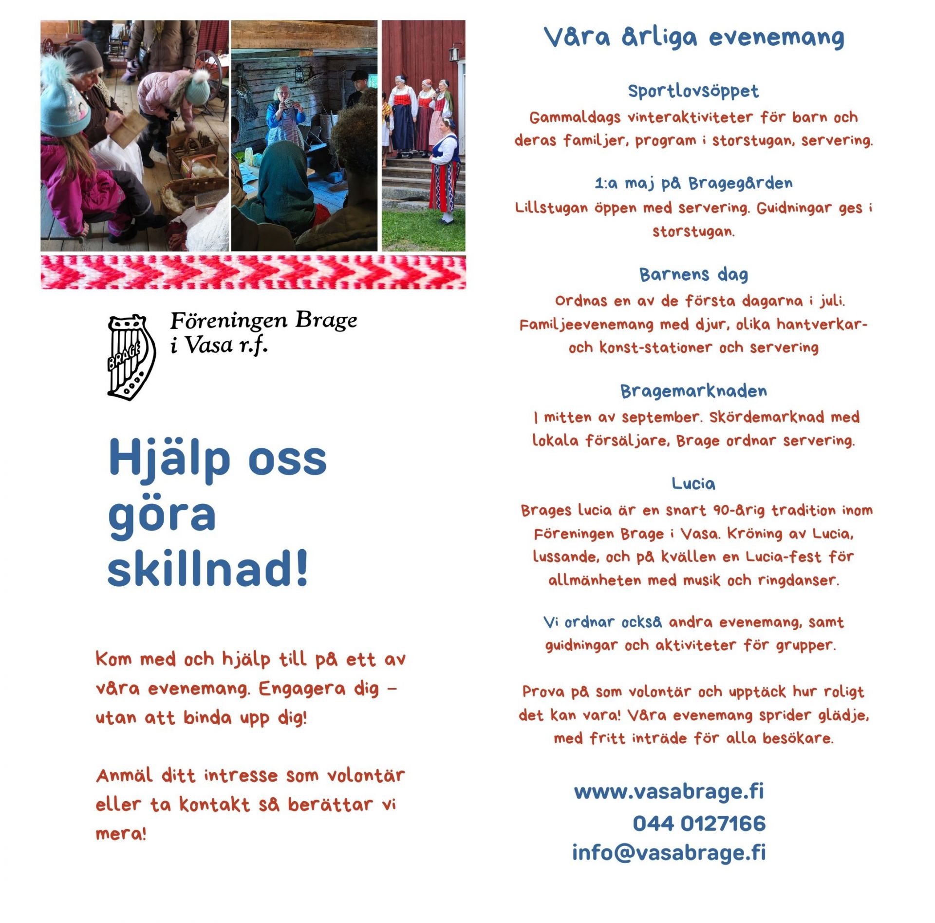 Den historiska Bragegården fungerar som friluftsmuseum och som vår mötesplats. Gården är en lugn tillflyktsort från dagens hektiska tempo, som ett andra hem där du kan njuta av inspirerande aktiviteter som exempelvis snickeri, vävning och måleri, eller kanske samlas någon kväll kring en brasa och samtala i en miljö som främjar eftertanke och avkoppling.